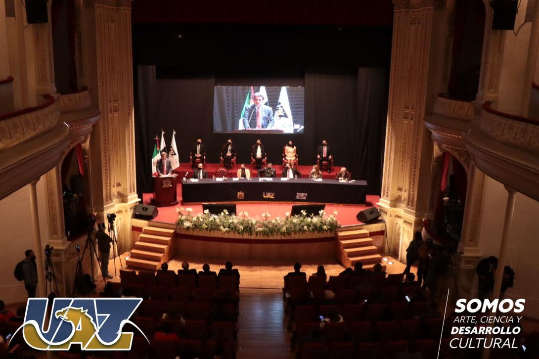 En el teatro “Fernando Calderón”, en Sesión Solemne del Honorable Consejo Universitario (UAZ) conociendo la concepcion y ruta crítica del proceso de Reforma de nuestra Universidad teniendo como invitados de Honor al Dr. Luciano Concheiro Bórquez Subsecretario de Educación Superior y Dra Carmen Enedina Rodríguez Armenta
