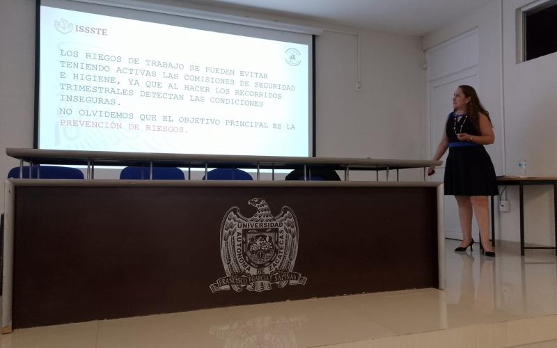 Este 17 de septiembre, en el auditorio de la Unidad Académica Preparatoria, Programa IV, se llevó a cabo la Reunión Informativa de Riesgos en el Trabajo, impartida por la Lic. Claudia Rivera Bejarano.