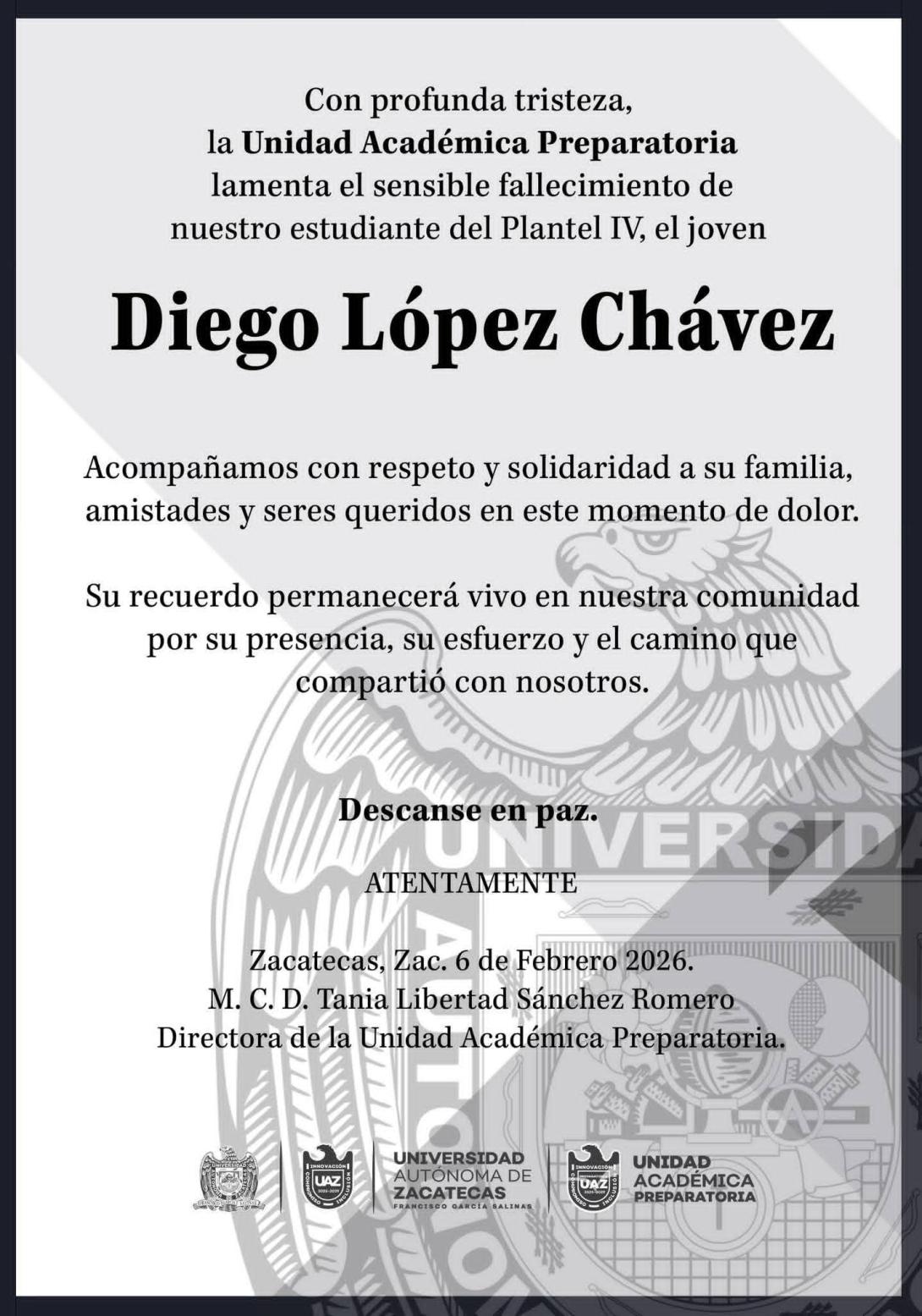 Docentes, Alumnos y Trabajadores nos unimos a la pena que embarga a la familia López Chávez, por el sensible fallecimiento del:
