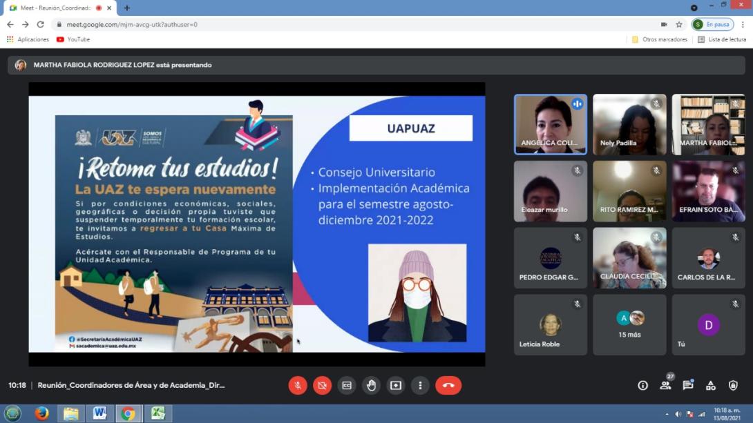 La Preparatoria de la UAZ, trabaja de manera vinculada con los colectivos académicos de la Unidad Académica Preparatoria, a través de los Coordinadores de Área y de Academia respecto a la Implementación Académica para el Semestre Agosto-Diciembre 2021, mediante el análisis y valoración del Ámbito Educativo en los Contextos Estatal, Nacional y Mundial respecto de la aún latente Pandemia. Por ello, la Dirección de la UAPUAZ llevó a cabo la presentación del diseño de planeación académica sistemática y cronológica, que permita tanto a docentes como alumnos el mejor desempeño para el semestre en línea por comenzar, de acuerdo a las disposiciones emitidas por el H. Consejo Universitario respecto de la actual contingencia sanitaria.